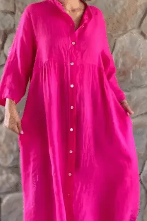 - 1*Cotton And Linen Loose Shirt Dress