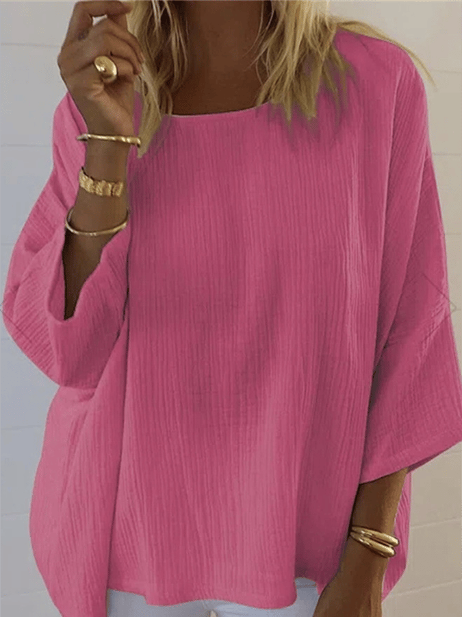 Women's Casual Loose Round Neck Solid Color Simple Long Sleeve Shirt