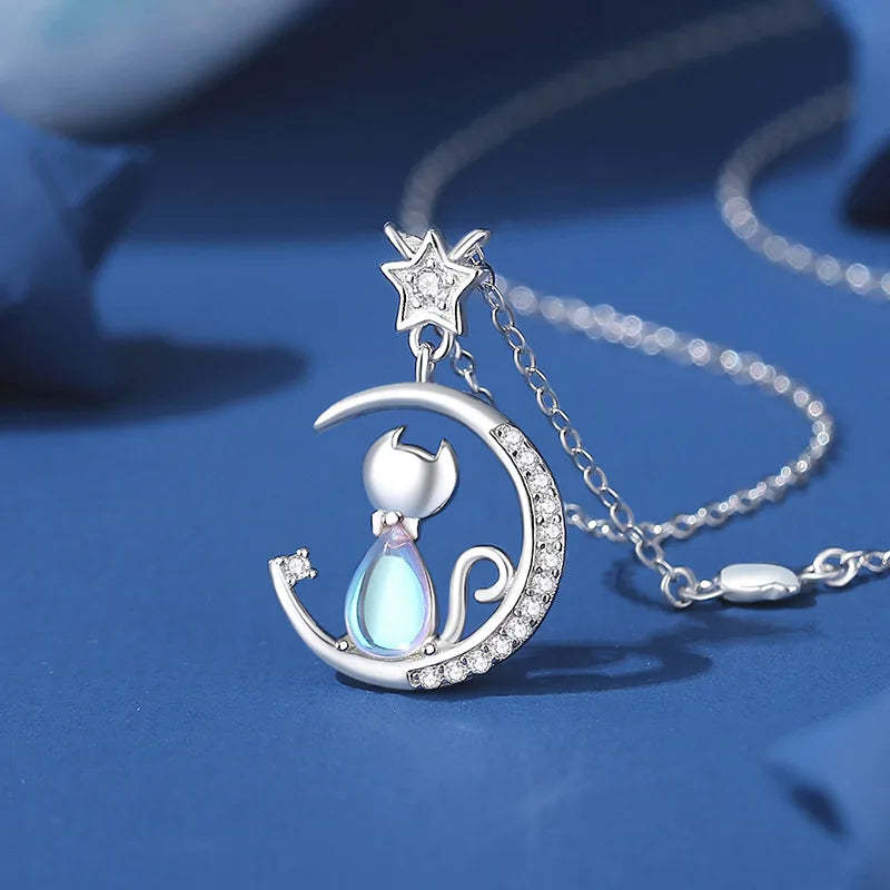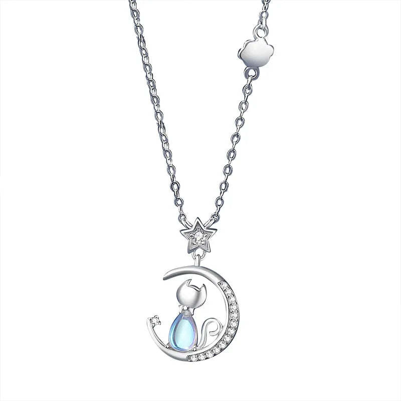 There's something magical about the way moonlight catches a cat's silhouette—that perfect moment of grace and mystery captured forever in sterling silver. This delicate pendant brings together two symbols of feminine intuition: the knowing wisdom of a cat and the gentle guidance of the crescent moon.