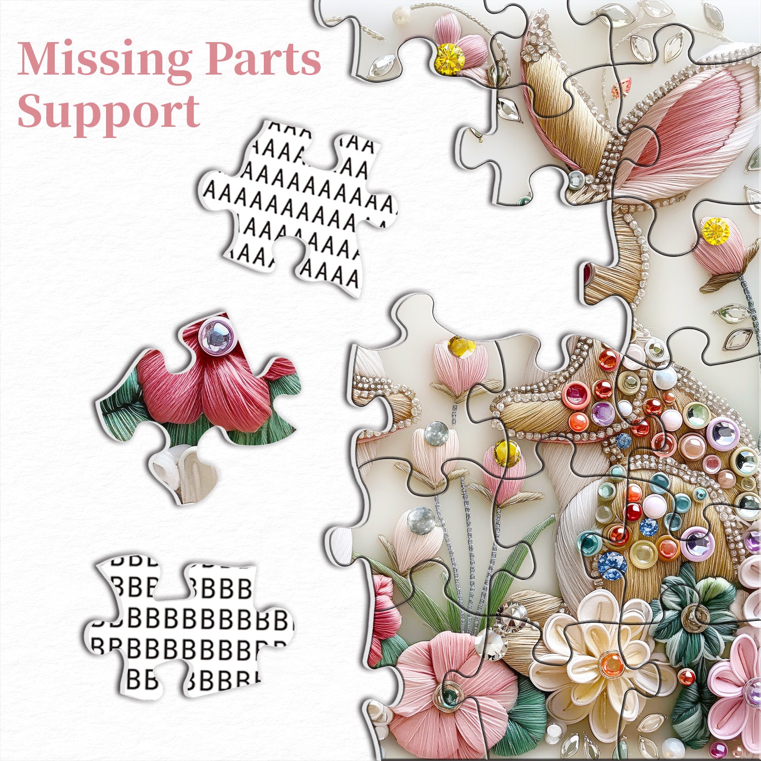 Soft Pastel Color Palette: The artwork features soft pastel colors, creating a gentle, soothing ambiance that complements the detailed embroidery and jeweled accents beautifully.