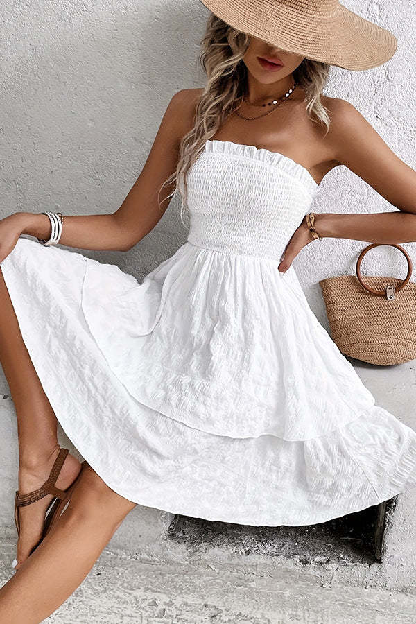 Smocked Chest Bandeau Solid Casual Dress