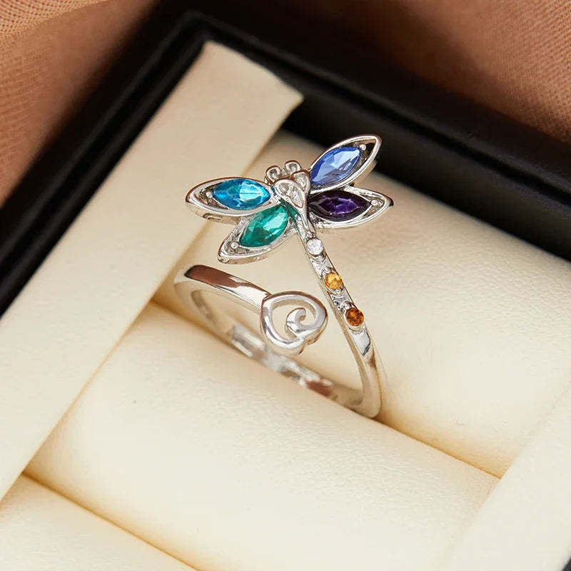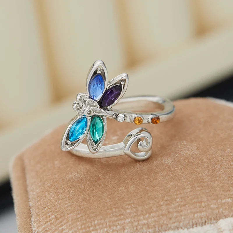 Embrace beauty, transformation, and color with this Vintage Dragonfly Adjustable Ring. Adorned with a delicately sculpted dragonfly and a shimmering array of multi-colored gemstones, it symbolizes renewal, light, and the joy of living in the moment.