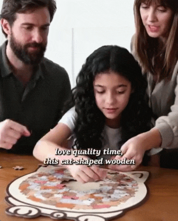 The combination of the cat frame and the uniquely shaped puzzle pieces creates a creative design, from the shape to the image. Unlike ordinary puzzles, this one is more artistic and interesting, instantly catching the eye.